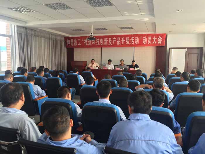 2016年10月6日上午,鐘鼎熱工“推進(jìn)科技創(chuàng)新及產(chǎn)品升級活動(dòng)”動(dòng)員大會(huì)在公司多功能廳順利召開,這是繼“質(zhì)量月活動(dòng)”、“安全月活動(dòng)”后的又一重大舉措。岳陽市發(fā)改委常務(wù)副主任張鑫、岳陽市科技局副局長張忠、總工程師羅明亮,環(huán)保部專家、VOC氣體治理領(lǐng)軍人物馬軍博士受邀參加了此次啟動(dòng)大會(huì)。